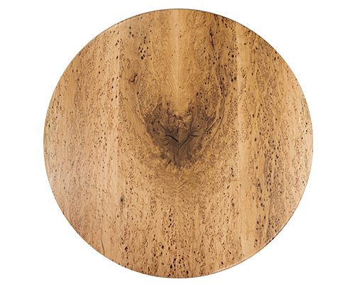 A floating top dramatically presents the rich, natural colors of figured wood. Tapered and rounded surfaces reflect the wood's organic nature.